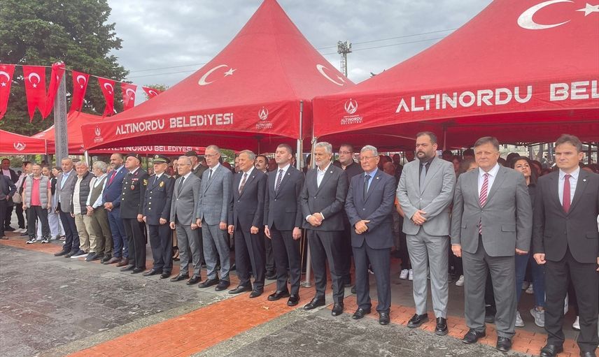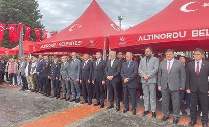 Törende Altınordu Kaymakamı İsmail Hakkı Ertaş ve Altınordu Belediye Başkanı Ulaş Tepe Atatürk Anıtı'na çelenk sundu. Ardından şehitler için saygı duruşunda bulunuldu ve İstiklal Marşı okundu.