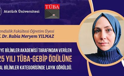 Atatürk Üniversitesi Mühendislik Fakültesi öğretim üyesi Prof. Dr. Rabia Meryem Yılmaz, Türkiye Bilimler Akademisi (TÜBA) tarafından verilen 2025 Yılı Üstün Başarılı Genç Bilim İnsanı (GEBİP) Ödülü'ne layık görüldü.