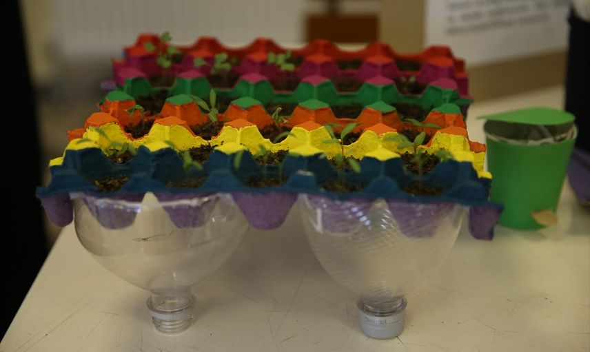 Öğrenciler, eski bazalardan çalışma masası, odun parçalarından sedir, kartonlardan çocuk oyun malzemeleri üretiyor. Ayrıca, pet şişelerden fide yetiştirmek için malzemeler ve yumurta kartonlarından oyuncak arabalar yapma gibi pek çok proje gerçekleştirdiler.