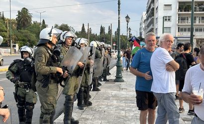 Göstericiler, "Filistin'e özgürlük" sloganları atarak, İsrail'in saldırılarına son verilmesini talep ettiler. Eylem kapsamında, son günlerde kruvaziyer gemileriyle Yunan adalarına gelen İsrailli turistlere yönelik gerçekleştirilen protestolara Yunan polisi'nin müdahalesini de kınadılar.