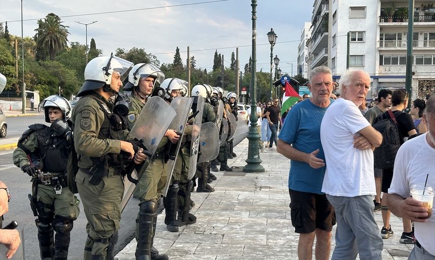 Yunanistan'ın başkenti Atina'daki Sintagma Meydanı'nda, İsrail'in Filistin'e yönelik saldırıları protesto edildi.