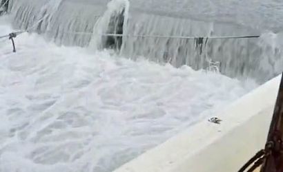 AVCILAR'DA ETKİLİ OLAN LODOS NEDENİYLE METRELERCE YÜKSELEN DALGALAR 4 METRE YÜKSEKLİĞİNDEKİ MENDİREĞİ AŞTI.