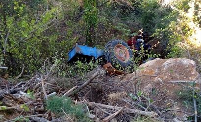 Çamlıdere Mahallesi’ndeki zeytinliğinden dönen Mehmet Sayın (69)'ın kullandığı traktör, şarampole devrildi.