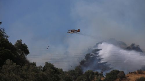 Aydın'ın Efeler ilçesinde ağaçlık alanda çıkan yangına havadan ve karadan müdahaleler sürüyor.