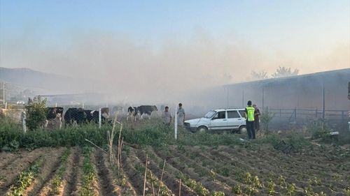 Aydın Koçarlı'da bir çiftlikte çıkan yangında 4 hayvan telef oldu, 150 ton saman yandı.