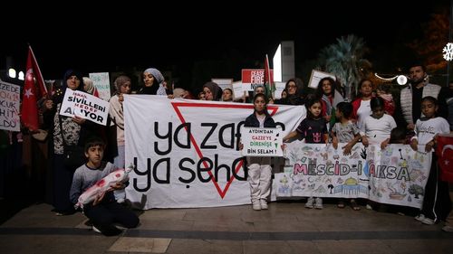 Aydın'da düzenlenen yürüyüşte vatandaşlar Küresel Sumud Filosu'na destek verip Gazze'deki ablukayı ve saldırıları protesto etti.