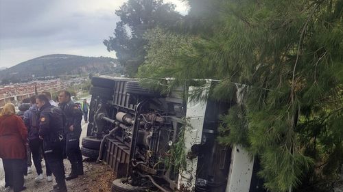 Aydın'ın Kuşadası'nda otel çalışanlarını taşıyan midibüs devrildi, 12 kişi yaralandı. Yaralıların durumu stabil.