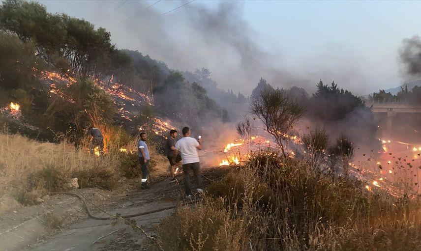 Aydın'da otoyoldaki kamyonda çıkıp ağaçlık alana sıçrayan yangın söndürüldü.