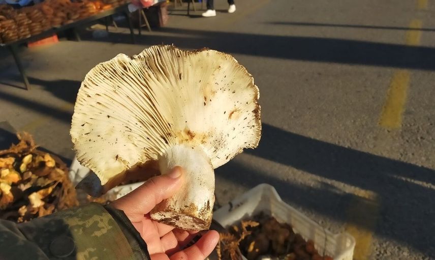 Tezgahta sergilenen iri mantarların kilosu 100 TL’den satışa sunuldu. Pazara gelen birçok vatandaş, mantarların büyüklüğünü cep telefonlarıyla görüntüledi ve tezgâhta yoğun ilgi oluştu.