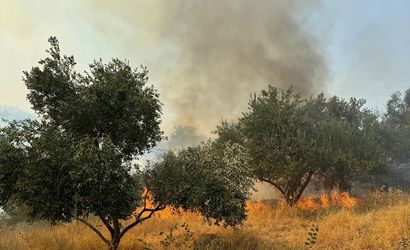 Aydın'ın Germencik ilçesinde zeytinlik ve ormanlık alanda dün başlayan yangın, bölgede ciddi zarara yol açtı. Yangının kontrol altına alınması için yoğun çaba sarf ediliyor.