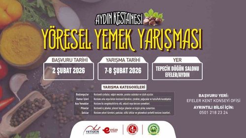 Aydın Kestanesi Yöresel Yemek Yarışmasıyla TanıtılacakEfeler Belediyesi, Aydın’ın önemli tarımsal ürünlerinden biri olan kestaneyi mutfaktaki çok yönlü kullanımıyla gündeme taşıyacak yeni bir etkinlik düzenliyor. Efeler Belediye Başkanı Anıl Yetişkin öncülüğünde hayata geçirilen organizasyon, hem bölgesel lezzetleri tanıtmayı hem de yerel…