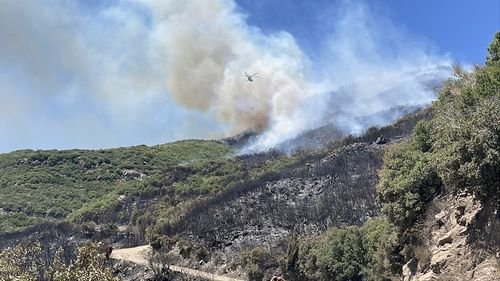 Aydın'ın Sultanhisar ilçesinde ziraat alanında çıkan yangına müdahale devam ediyor, ekipler yangını kontrol altına almaya çalışıyor.