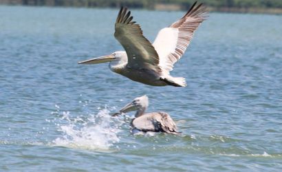 Nesli tehlike altında bulunan bir Tepeli Pelikan (Pelacanus crispus), Aydın'daki Azap Gölü'nde gagasına dolanan olta iğneleri nedeniyle uçamaz hale geldi. Durumu fark eden balıkçılar, kuşu dakikalar içinde kurtardı.