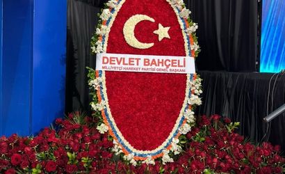 MHP Genel Başkanı Devlet Bahçeli, AK Parti 8'inci Olağan Büyük Kongresi'ne milli birlik ve kardeşliği simgeleyen özel çiçek aranjmanı gönderdi. MHP'nin sosyal medya hesabından yapılan paylaşımda, üzerinde Genel Başkan Bahçeli'nin isminin yazdığı aranjmanın fotoğraflarına yer verildi. Aranjmanda yer alan 1071 gül Malazgirt Zaferi'ni, 1453 karanfil İstanbul'un Fethi'ni, Türk bayrağı çerçevesi birlik ve dayanışmayı, 23 beyaz orkide AK Parti'nin 23 yıllık yönetimini temsil ediyor.