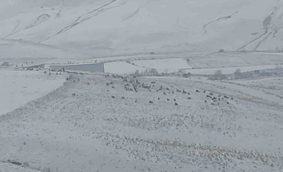 Arvas Mahallesi sakinleri ise ahırlarda biriken kar yığınlarını temizleyip, kar üzerine serdikleri ot ve saman ile hayvanlarını besledi.