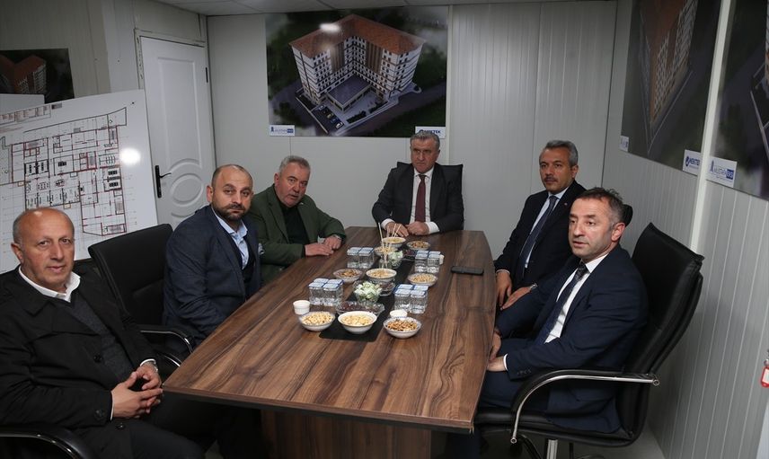 Gençlik ve Spor Bakanı Osman Aşkın Bak (ortada), Rize'de yapımı süren iki öğrenci yurdu inşaatında inceleme yaptı. Bakan Bak, çalışmalara ilişkin yetkililerden bilgi aldı. Bakan Bak'a, Vali İhsan Selim Baydaş (sağda) eşlik etti.