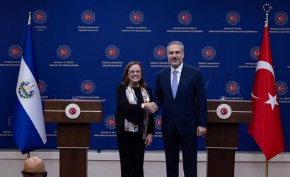 Dışişleri Bakanı Hakan Fidan (sağda), El Salvador Dışişleri Bakanı Alexandra Hill (solda) ile Bakanlıktaki görüşmesinin ardından ortak basın toplantısı düzenledi.