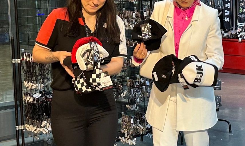 Aile ve Sosyal Hizmetler Bakanı Mahinur Özdemir Göktaş (ortada), Beşiktaş'ın stadındaki "Kartal Yuvası" mağazasını ziyaret etti, çocuklarına forma satın aldı.
