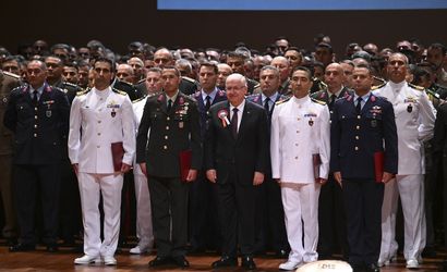 Milli Savunma Bakanı Yaşar Güler, Milli Savunma Üniversitesi'ndeki 14'üncü Dönem Müşterek Komuta ve Kurmay Eğitimi ile Kuvvet Harp Enstitüleri 7'inci Dönem Komuta ve Kurmay Eğitimi Mezuniyet Töreni'ne katılarak konuşma yaptı.
