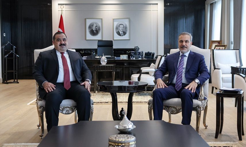 Dışişleri Bakanı Hakan Fidan (sağda), Ankara'da Irak Azm İttifakı lideri Müsenna Samarrai (solda) ile görüştü.