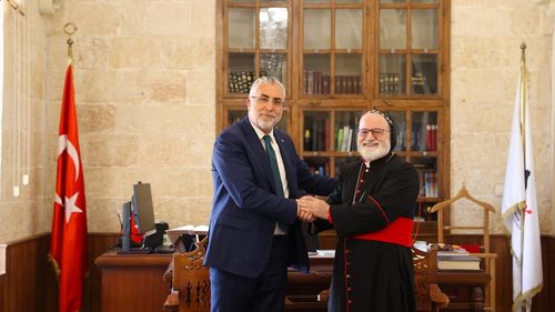 Çalışma ve Sosyal Güvenlik Bakanı Vedat Işıkhan, Mardin'de Deyrulzafaran Manastırı'nı ziyaret etti.