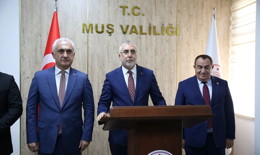 Çalışma ve Sosyal Güvenlik Bakanı Vedat Işıkhan (ortada), Muş'ta İl Jandarma Komutanlığı Sosyal Tesislerinde düzenlenen "Türkiye Yüzyılı'nda Çalışma Hayatı Buluşmaları" programına katılarak konuşma yaptı.
