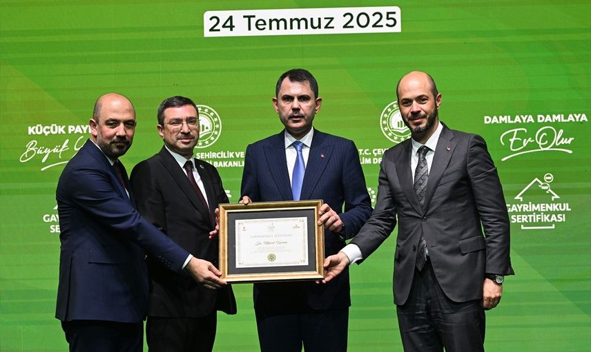 Çevre, Şehircilik ve İklim Değişikliği Bakanı Murat Kurum, Gayrimenkul Sertifikası tanıtım toplantısında önemli açıklamalarda bulundu. Kurum, "Bu sertifika, gayrimenkul projelerine küçük paylarla ortak olmanızı sağlayacak. Ortak olduğunuz konut, hisse senedine benzer şekilde Borsa İstanbul'da işlem görebilen bir enstrümandır," dedi.