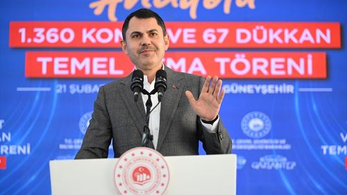 Bakan Murat Kurum, Gaziantep'te deprem sonrası sosyal konut projeleri için temel attı. 1 milyon 481 bin konut inşa edileceği açıklandı.