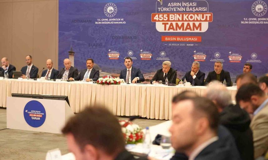 Hatay’da medya temsilcileriyle bir araya gelen Çevre, Şehircilik ve İklim Değişikliği Bakanı Murat Kurum, 27 Aralık Cumartesi günü Cumhurbaşkanı Recep Tayyip Erdoğan’ın katılımıyla gerçekleştirilecek 455 bininci afet konutu teslim töreni öncesi değerlendirmelerde bulundu.