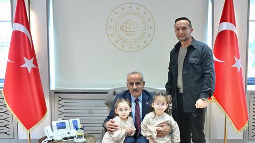 Ulaştırma Bakanı Abdulkadir Uraloğlu, uçaklara sevinçleri sosyal medyada ilgi çeken 4,5 yaşındaki ikizler Erva ve Zümra'yı Bakanlıkta ağırladı; kokpite binip uçak maketi hediye etti.