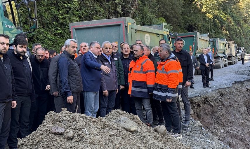 Ulaştırma ve Altyapı Bakanı Abdulkadir Uraloğlu ile Gençlik ve Spor Bakanı Osman Aşkın Bak, sağanaktan etkilenen Çamlıhemşin-Ayder Yaylası yolunda sürdürülen çalışmaları inceledi.