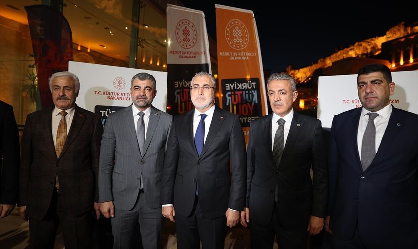 İşaret ettiği tarihi mekanlarla ilgili olarak Işıkhan, "Özellikle Kasımiye Medresesi, Zinciriye Medresesi ve Dara gibi antik şehirlerin bugün şehri de dolaştık. Hem yerli turist hem de yabancı turistler tarafından inanılmaz bir şekilde övgüyle izlendiğini gördük. Ben buradan öncelikle Kültür Turizm Bakanımız Sayın Mehmet Ersoy'a teşekkür ediyorum, kültür yolunu Mardin'e sunduğu için. Aynı zamanda Sayın Bakanımızın ekibine de teşekkür etmek istiyorum değerli arkadaşlarım. Müzeleri dolaşıyoruz ama kentin çok farklı yerlerinde Sayın Valimizin, Kültür ve Turizm il Müdürlüğümüzün koordinatörlüğünde çok güzel etkinlikler düzenleniyor." Işıkhan, medeniyetlerin kesiştiği şehirde hoşgörü ve kardeşliğin öne çıktığını vurguladı ve memnuniyetini dile getirdi: "Biliyorsunuz, yüzyıllardan beri süren hem dillerin hem dinlerin şehri Mardin'de Türkler, Kürtler, Araplar, Süryaniler hep birlikte bir arada yaşama kültürünü oluşturmuş durumdayız." Festivalin turistik ve kültürel cazibesine dikkat çeken Bakan, şu değerlendirmeyi paylaştı: "Aslında Türkiye'nin mozaiğini özetlediğimizde Mardin müthiş bir coğrafya. Mezopotamya'nın aşağısına baktığınızda şimdi gelen turistlere hayranlıkla bakıyorum. Çaylarını içerken müthiş bir manzarayla karşı karşıya kalıyorlar. Şimdi bizi izleyen kardeşlerimizi de davet etmek istiyorum Mardin'imize farklı bir medeniyet, farklı bir coğrafya var. Biz ev sahipliği yapmaya hazırız." Işıkhan, toplantıda ayrıca Sayın Kültür ve Turizm Bakanı Mehmet Ersoy, Vali Tuncay Akkoyun, AK Parti Mardin Milletvekili Faruk Kılıç, AK Parti İl Başkanı Mehmet Uncu, MHP İl Başkanı Ferhan Bozkuş ve İl Kültür ve Turizm Müdürü Ayhan Gök'e teşekkür ettiğini belirtti ve ekledi: "Sayın Valimize, sayın vekilimize, il başkanımıza huzurlarınızda teşekkür etmek istiyorum çünkü bu bir ekip işi. Ekip de başarılı bir iş çıkarıyor." Bakan Işıkhan, festivalin konser programlarına ve etkinliklere de değindi: "Şu an konserler devam ediyor. Yarın farklı sanatçıların katılımıyla konserler olacak. Tüm Mardinliler zaten şu an oraya gitmiş durumda. Müthiş bir şenlik, müthiş bir festival." Geziye, Vali Tuncay Akkoyun, AK Parti Mardin Milletvekili Faruk Kılıç, AK Parti İl Başkanı Mehmet Uncu, MHP İl Başkanı Ferhan Bozkuş, İl Kültür ve Turizm Müdürü Ayhan Gök ile davetliler eşlik etti. Çalışma ve Sosyal Güvenlik Bakanı Vedat Işıkhan (ortada), Mardin Kültür Yolu Festivali kapsamında açılan sergileri gezdi.