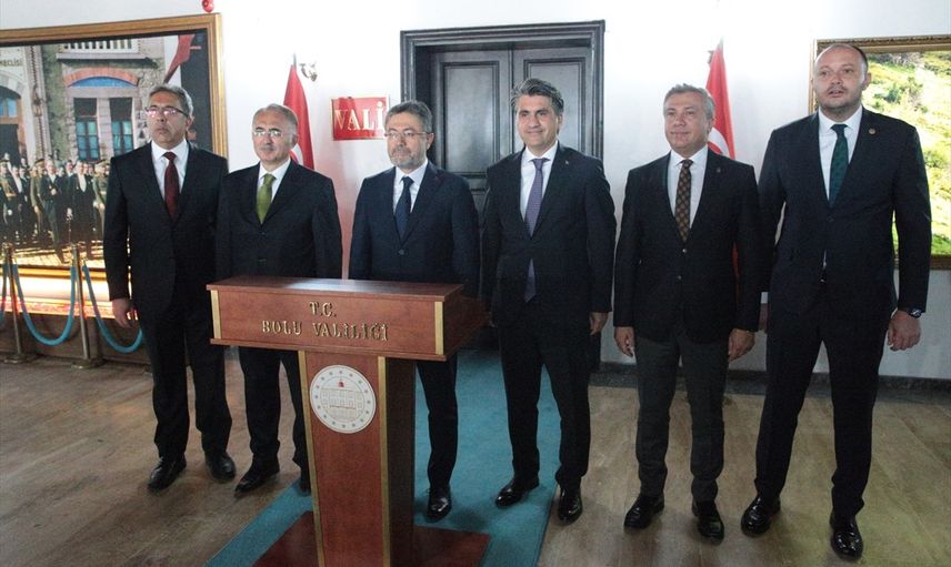 Tarım ve Orman Bakanı İbrahim Yumaklı (sol 3), çeşitli programlara katılmak için geldiği Bolu'da Valiliği ziyaret etti. Bakan Yumaklı'yı, Vali Abdulaziz Aydın (sağ 3) ve protokol üyeleri karşıladı.