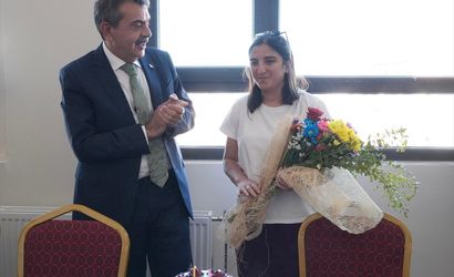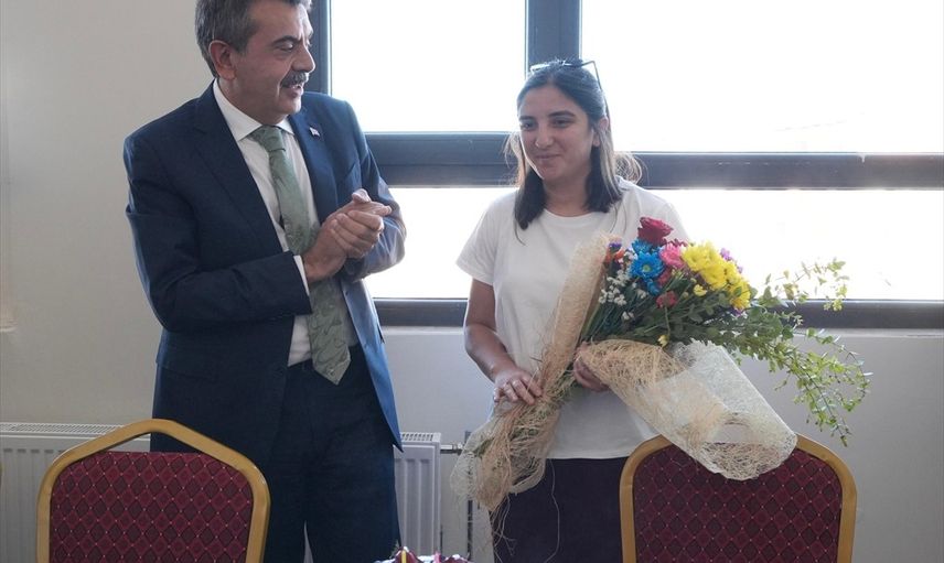 Ziyaret sırasında beden eğitimi öğretmeni Hilal Parlak'a sürpriz yapan Bakan Tekin, öğretmenin doğum gününü kutlayarak pasta kesti ve kendisine çiçek ve kalem hediye etti.