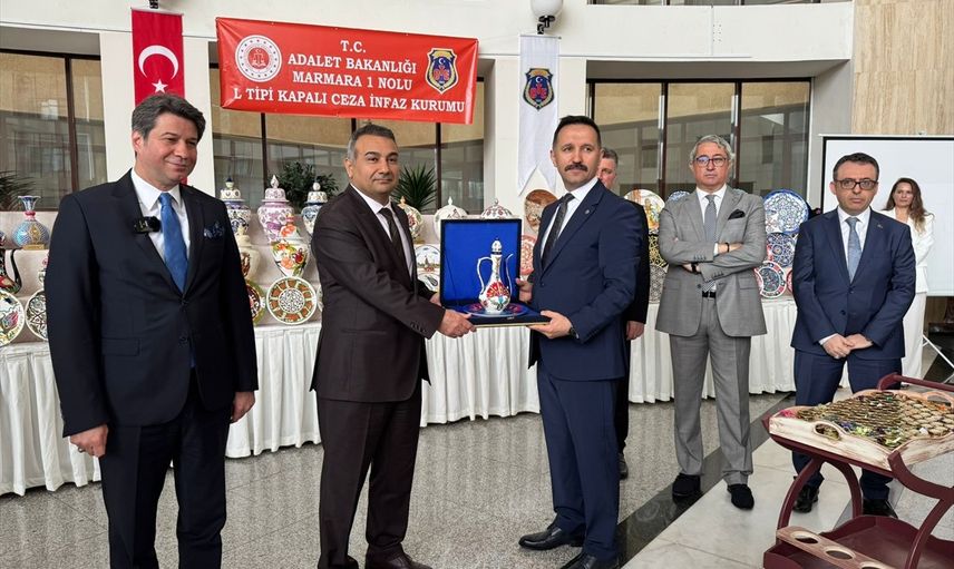 Açılışta, Hükümlülerin yaptığı ürünlerden hediye alan Başsavcı Gümüş ve Adalet Komisyonu Üyesi Güler'in yanı sıra, Marmara 1 Nolu L Tipi Kapalı Ceza İnfaz Kurumu Müdürü Özkan Özdemir de Sarı'ya özel bir hediye takdim etti.