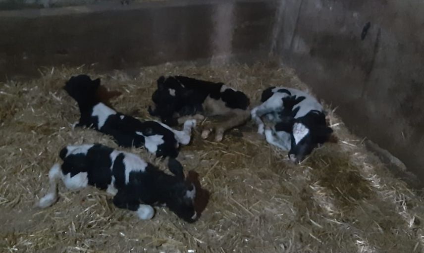 Balıkesir'in Susurluk ilçesinde bir inek tek batında 5 buzağı dünyaya getirdi.