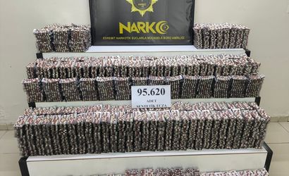 Ekiplerin araçta yaptığı aramada 95 bin 620 uyuşturucu hap bulundu, 1 şüpheli gözaltına alındı.
