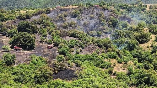 Balıkesir'in Kepsut ilçesindeki orman yangını kontrol altına alınmaya çalışılıyor. Ekipler havadan ve karadan müdahale ediyor.