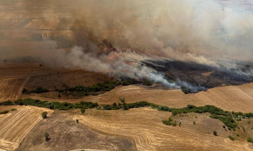 Balıkesir'in Kepsut ilçesinde tarım arazisinde çıkan yangın, kontrol altına alınmaya çalışılıyor.