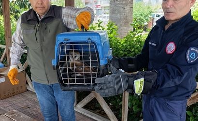 Balıkesir'in Burhaniye ilçesinde balkon pervazına takılarak yaralanan baykuş, itfaiye ekiplerince kurtarıldı.