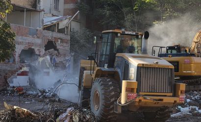 İş makineleriyle, binanın enkazından çıkan molozlar kamyonlara yükleniyor. Ayrıca, binada yaşayan bireylerin kişisel eşyalarının kurtarılması durumunda ise çalışmalar geçici olarak durduruluyor. Bu esnada, AA ekibi, kurtarma faaliyetlerini görüntülemekte.