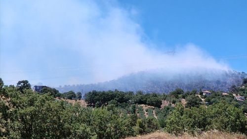 Balıkesir'in Savaştepe ilçesinde çıkan orman yangınına havadan ve karadan müdahale ediliyor.
