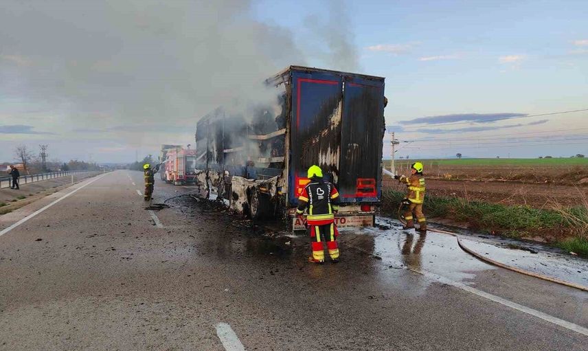Balıkesir-Bandırma karayolunda seyir halindeki karton yüklü tırın dorsesinde yangın çıktı. Kısa sürede büyüyen alevler, itfaiye ekiplerinin müdahalesiyle kontrol altına alındı ve söndürüldü.