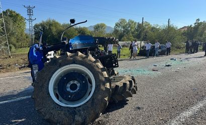 Bartın'da iki otomobille traktörün çarpışması sonucu 4 kişi yaralandı.