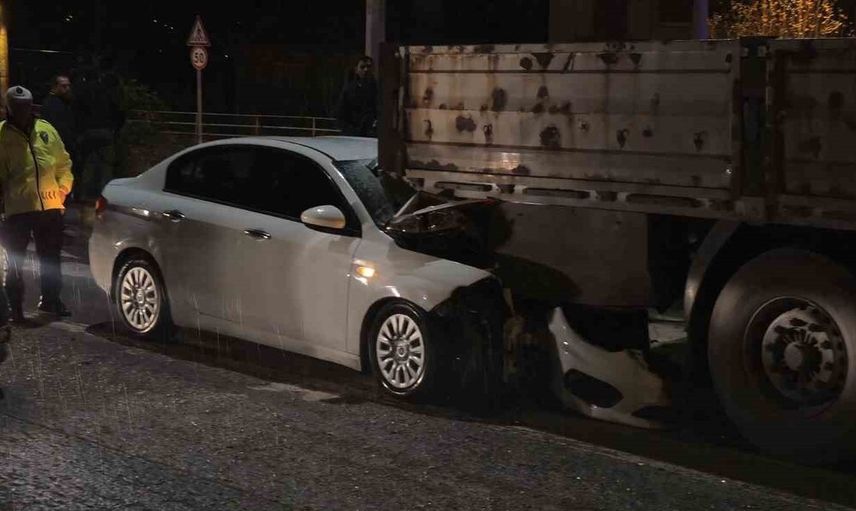 Bartın Gölbucağı Kavşağı’nda şehir merkezi istikametine seyir eden S.T. idaresindeki 34 BJG 526 plakalı otomobil, kırmızı ışıkta duran K.D. idaresindeki 74 BE 133 plakalı tırın dorsesine arkadan çarparak dorseye ok gibi saplandı. Çarpışmanın etkisiyle otomobilin ön kısmı büyük hasar görürken, sürücü araç içerisinde sıkıştı.