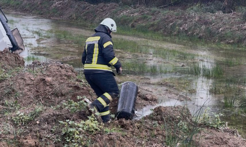 Otomobilin LPG tankının yerinden çıkarak yola savrulduğu ve gaz kaçağı oluştuğu görülürken, itfaiye ekipleri çevrede güvenlik önlemleri aldı. Tırın kupa kısmı ise Bartın Çayı kenarında asılı kaldı.