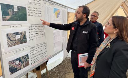 Bazı ekipler olay yerinde saha koordinasyon merkezi, kayıt masası, barınma çadırları, personel konuşlanma alanları ve iaşe alanları oluşturdu.