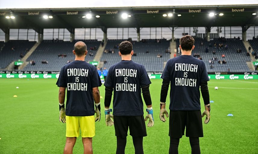 UEFA Konferans Ligi 3. eleme turu ilk maçında Norveç ekibi Viking'e konuk olacak İstanbul Başakşehir'de futbolcular, ısınmaya Gazze'ye destek tişörtleriyle çıktı. Turuncu-lacivertli kulübün başkanı Göksel Gümüşdağ, üzerinde "İnsanlığa karşı işlenen suçları durdurun" ve "Birleşen sesler sessizliği bozar" yazılı siyah tişörtü giyerek AA muhabirine açıklamalarda bulundu.