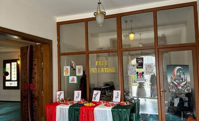 Katılımcılar için Filistin bayrağının renkleriyle süslenmiş bir masada karpuz, zeytin ve limon ikram edildi. Ayrıca, etkinliğin görsel zenginliği artırmak için siyah, beyaz, kırmızı ve yeşil balonlar gökyüzüne uçuruldu.