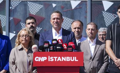 CHP Grup Başkanvekili Ali Mahir Başarır (ortada), CHP İstanbul İl Başkanlığı binası önünde basın açıklaması yaptı.